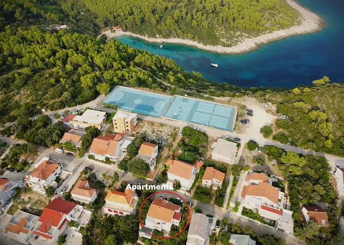 Apartments With Parking Space Zavalatica, Korcula - 14204距离扎瓦拉提卡市中心不远,步行只需5分钟,在现场有免费私人停车场。 在这家住所的露台上可享受大海景色。